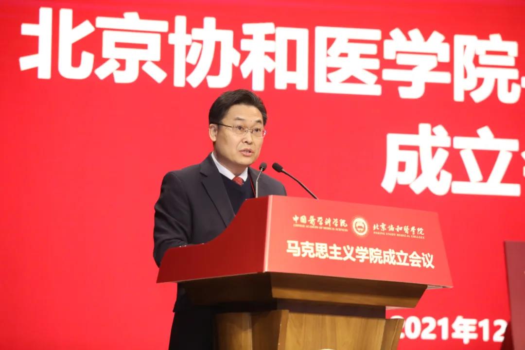 会上,国家卫生健康委直属机关党委常务副书记杨建立宣读国家卫生健康委党组书记、主任马晓伟批示。马晓伟指出,beat365官方网站成立马克思主义学院是在新时代新征程上全面贯彻习近平新时代中国特色社会主义思想,落实《关于加强新时代马克思主义学院建设的意见》的重大举措。要认真学习贯彻党的十九届六中全会精神,坚持正确办学方向,坚持和加强党的全面领导,聚焦马克思主义中国化时代化最新成果的学习研究宣传,切实发挥思想政治理论课立德树人关键课程作用和马克思主义理论学科引领作用,大力弘扬和传承百年协和的优秀基因和精神内核。
