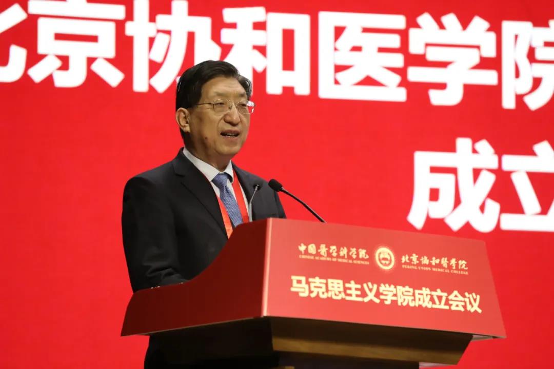 国家卫生健康委副主任曾益新致辞强调,马克思主义学院要在政治引领、开放办院、协同育人、服务社会上下功夫,聚焦马克思主义在卫生健康领域的运用规律研究,健全以马克思主义为指导的中国特色医学人文学科建设,发挥最高医学研究机构和最高医学教育机构的示范引领作用,坚持政治建院,人才强院,管理兴院,坚决扛起政治责任和社会责任,坚持“马院姓马,在马言马”的政治导向和办学原则,努力建成一流的马克思主义学院。