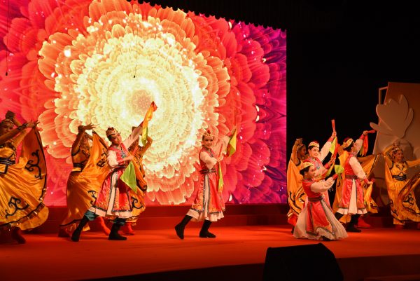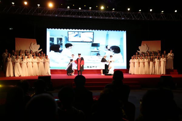 灯光、舞美与院景交相辉映、摇曳着沧桑岁月的积淀,精美的歌舞述说了院校对祖国医学事业的贡献与辉煌,呈现出一切为了人民健康的文化底蕴。