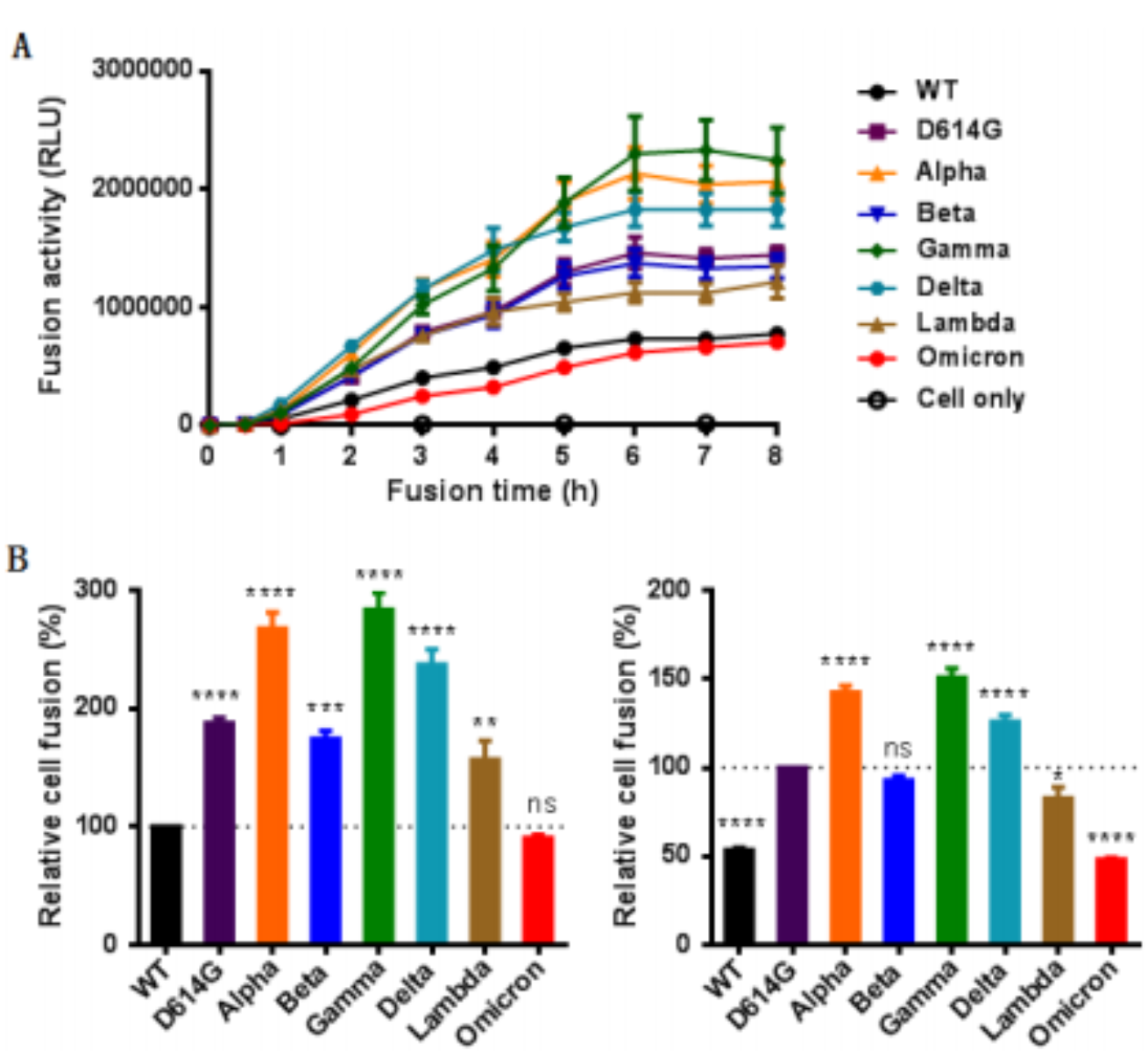 图. 不同SARS-CoV-2变体的融合活性