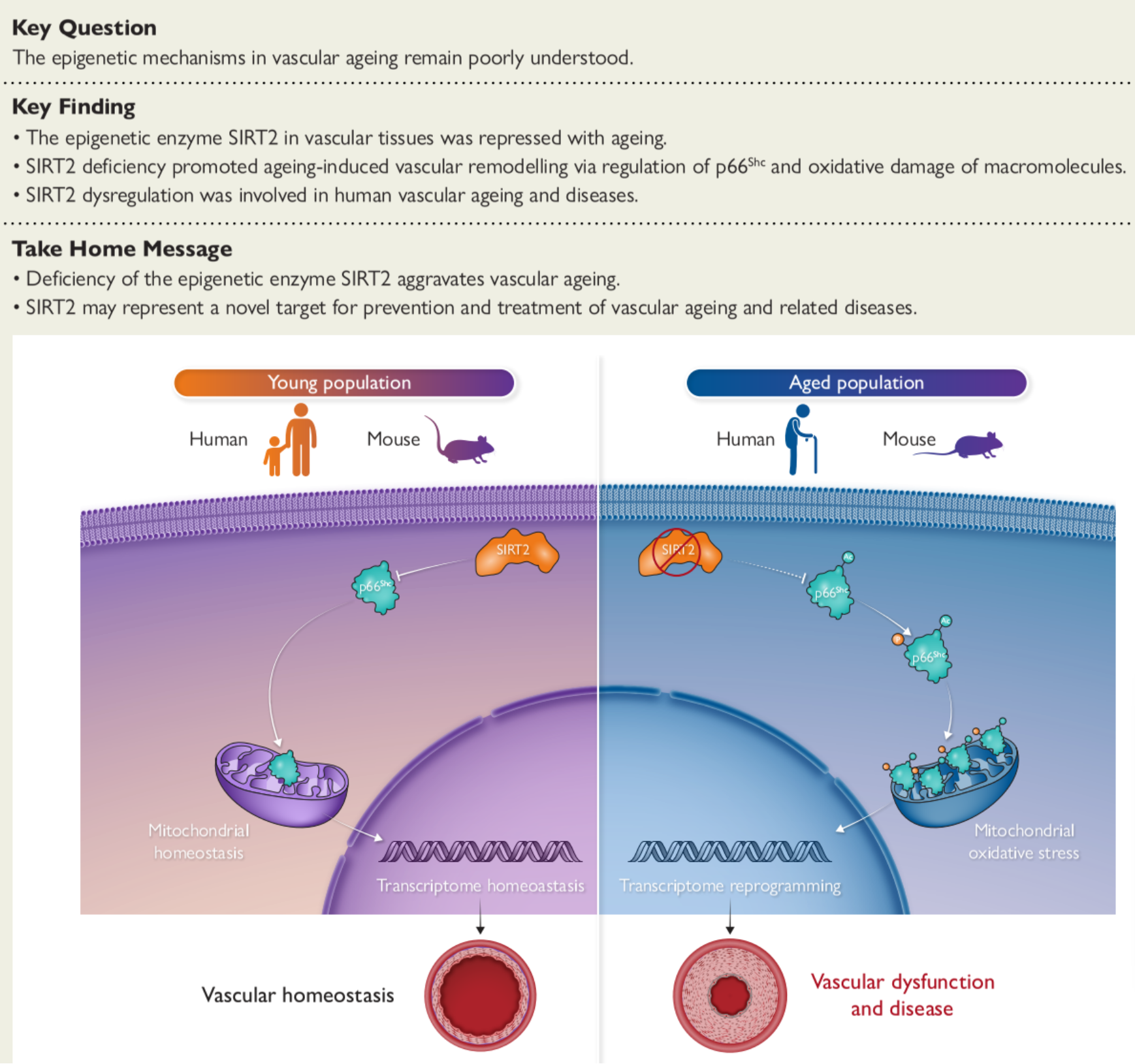 2023年6月28日,beat365官方网站基础医学研究所陈厚早研究员团队在European Heart Journal(欧洲心脏杂志)发表了题为“Sirtuin 2 deficiency aggravates ageing-induced vascular remodelling in humans and mice”(SIRT2的缺陷加剧衰老诱导的血管重塑)的研究论文,首次揭示了内源性表观修饰酶在血管衰老中的关键功能。