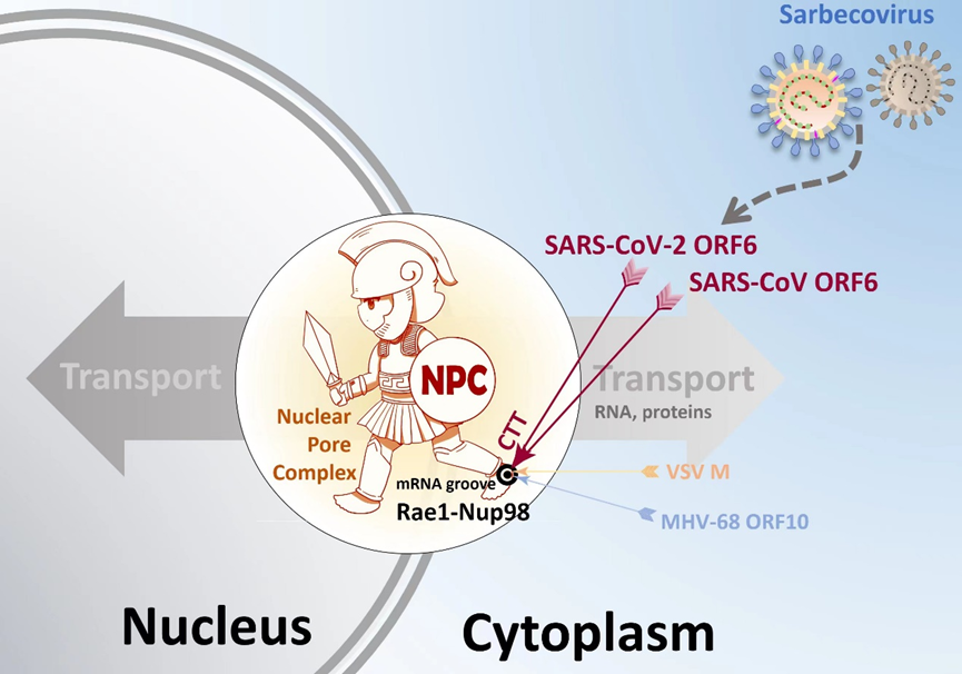图. Sarbecovirus辅助蛋白ORF6抑制天然免疫的模式图