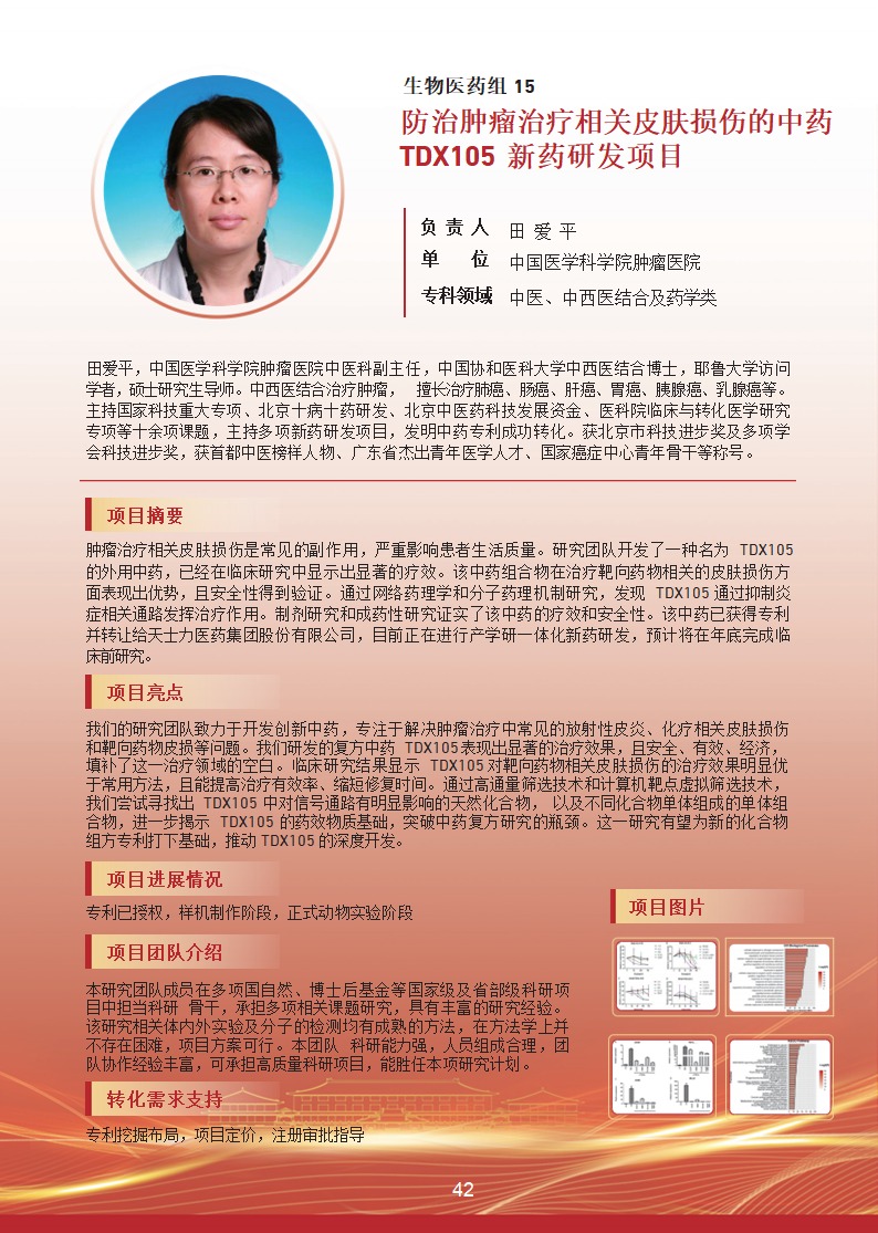 防治肿瘤治疗相关皮肤损伤的中药 TDX105 新药研发项目 |
