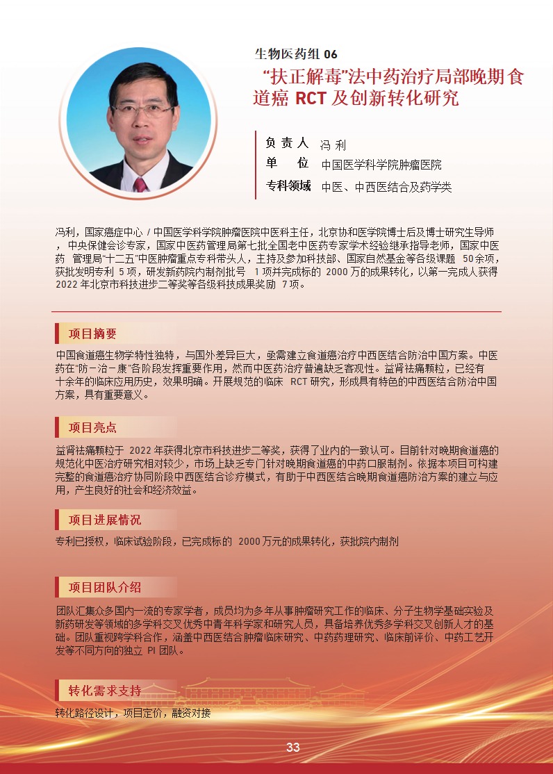 “扶正解毒”法中药治疗局部晚期食道癌 RCT 及创新转化研究 |