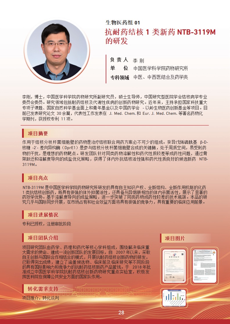 抗耐药结核 1 类新药 NTB-3119M 的研发 |
