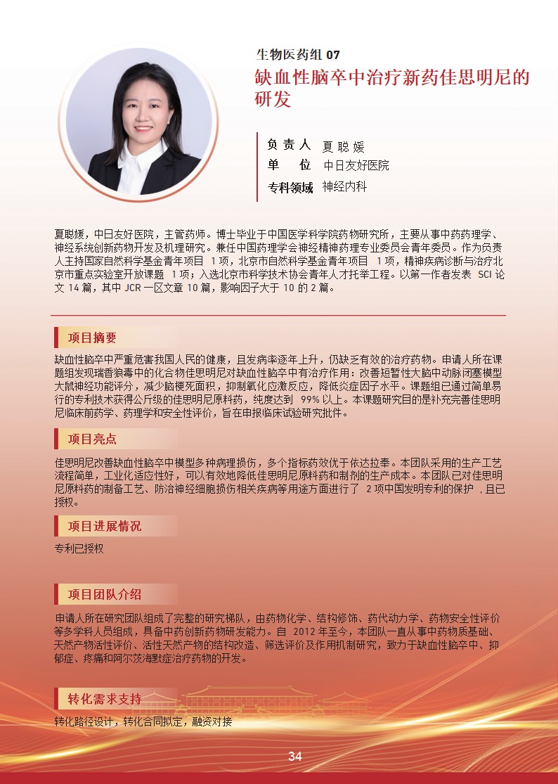 缺血性脑卒中治疗新药佳思明尼的研发 |