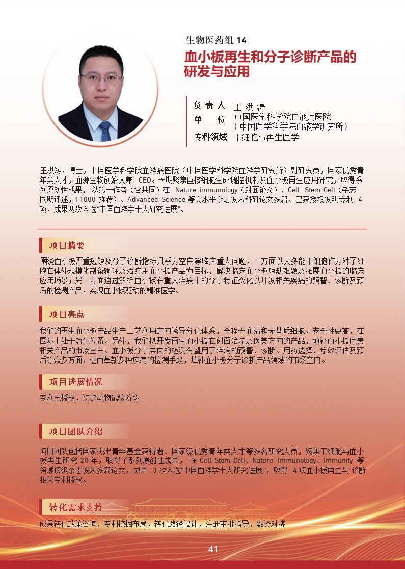血小板再生和分子诊断产品的研发与应用 |