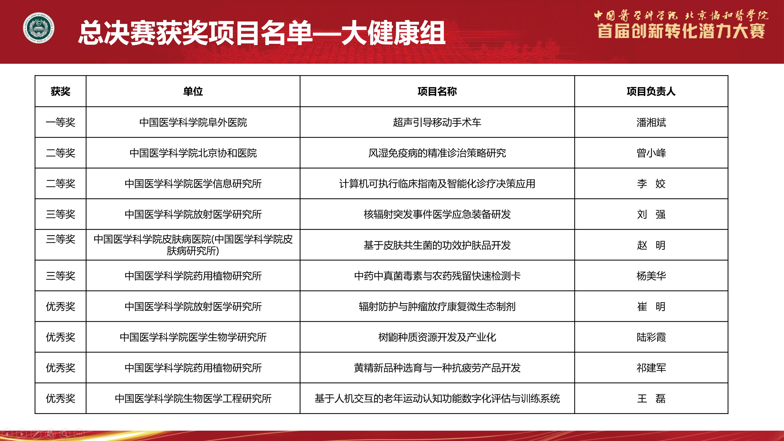 首届创新转化大赛获奖项目