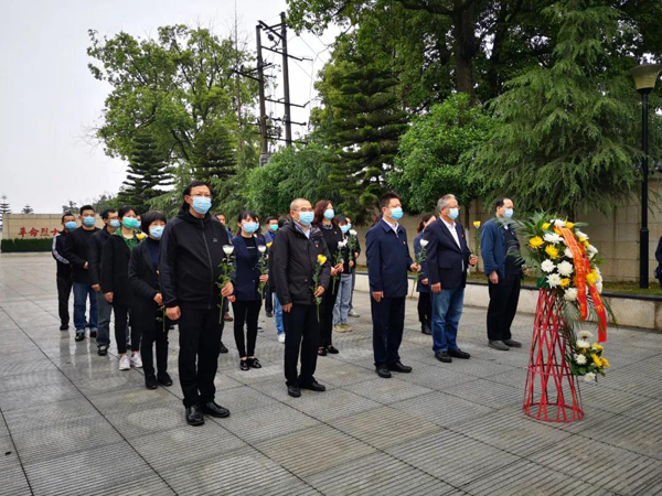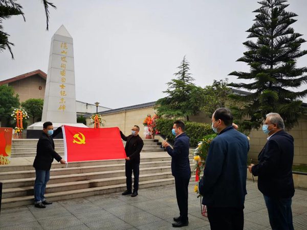 在庄严肃穆的陵园内,在革命烈士纪念碑前,陈勇军书记带领全体党员重温了入党誓词。全体人员向革命烈士鞠躬默哀,并由党员代表敬献花篮,同时对陵园内长眠的19位烈士进行了祭扫并敬献鲜花,表达缅怀之情。