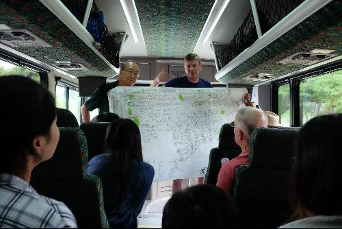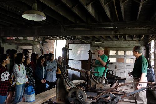 访学团成员在乘坐大巴车参观过程中,尹润生教授及同行的Dr. Jim Kielbaso、Mr. Chris Pargoff和Mr. Todd Mistor对重要地标建筑、当地典型区域进行了的具体介绍。当大巴逐渐驶入老城区,昔日辉煌、今夕衰败的无人住宅区映入眼帘,“成也萧何,败也萧何”的遗憾感油然而生。底特律大教堂华丽典雅,尽管时间洗礼着城市,但教堂内的信众依然保持着心中那份虔诚;底特律民间工艺集结地——小“迪士尼乐园”,琳琅满目的艺术品在古旧的院落里安静又沉溺,仿佛也失去了赏识它们的伯乐;隐蔽在丛林公园中荒废的小型木材工厂,昭示着往日木材需求的旺盛……兴衰的强烈对比冲击不仅令访学团成员唏嘘不已,更是陷入了各自对于底特律兴衰原因的思考。