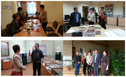 10月3号上午,访问团到达鄂木斯克农业大学,两位老师顾不上一昼夜的奔波便投入工作。按照鄂木斯克农业大学国际处的行程安排,与分管教学、科研、生产实践的三位副校长Алещенко Виталий Викторович、Комарова Светлана Юриевна 、Кумпан Владимир Николаевич 会面,并就两校教学、科研和社会服务等方面进行了初步交流。随后,在副校长Комарова Светлана Юриевна的带领下,访问团对主校区的教学设施、校史馆、动物标本馆进行了考察。