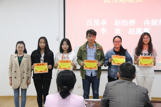 会议伊始,张鹏飞总结了太阳成集团在本次校运动会上取得的出色成绩,充分肯定了所有运动员和幕后工作者的辛勤付出。随后,学生会主席刘鹏对本次运动会前后院团工委学生会各部门的工作表示感谢,同时提出团学各部门应进一步增加合作,让各项工作再上台阶。之后,学工秘书张静宣读表彰文件,公布表彰名单,与会老师分别为获最具潜力奖、最佳新人奖、优秀运动员奖、最大进步奖、突出贡献奖、最佳运动员奖、优秀组织奖和优秀团体奖的组织或个人颁发奖状,现场气氛热烈、掌声不息。