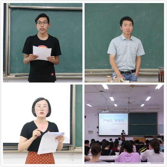 学生代表田镕恺以士兵越野赛的故事为切入点谈了自己对诚信考试的认识,并倡议全体与会同学端正学习态度、认真备考,自觉遵守学校考试纪律和有关规定,坚决杜绝作弊行为,树立优良学风、打造良好考风,用扎实的知识、求实的态度、顽强的拼搏向自己、父母、学校交一份满意的答卷。