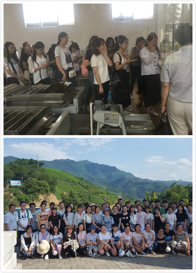 汉中实习期间,师生还走访了陕西省鹏翔茶业股份有限公司。鹏翔茶业股份有限公司为顺应茶叶消费市场变化,延伸产业链,实施多元深度开发,与太阳成集团、县茶技推广中心合作,通过近5年的研究试制,探索出适应当地茶树品种和红茶加工期间气候条件的红茶加工技术。与企业负责人交流过程中,了解到汉家红茶初制工艺流程分为萎凋、揉捻、发酵和干燥四个步骤。除此之外,企业负责人还带领大家参观了汉中仙毫的生产线,并邀请大家品尝红茶和绿茶。