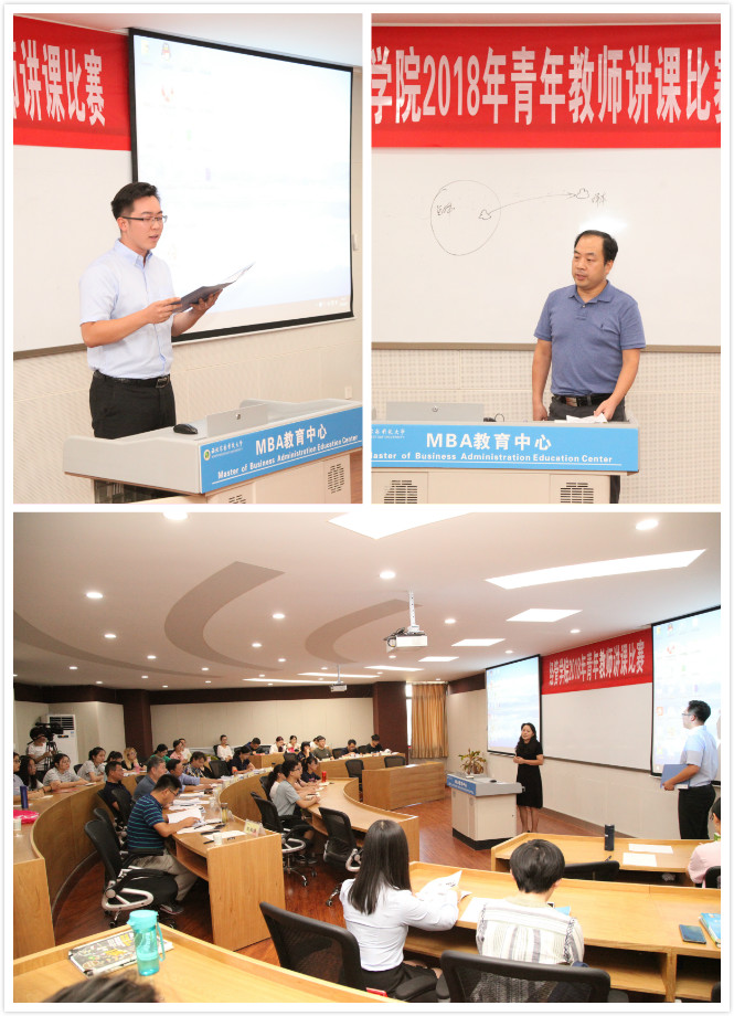 恰逢教师节来临之际,为进一步提高学院青年教师的教学能力,搭建教师相互学习和交流的平台,9月7日下午,经管学院在C301报告厅举办了“青年教师讲课比赛”。本次比赛由各系选拔出10名教师参加。特邀教务处副处长李论、学院领导、教授委员会组长、督导组副组长、系主任、教师代表和学生代表担任评委,教授委员会组长郑少锋教授担任比赛的主席,各系教师代表、新进青年、学生等50余人到场观摩。