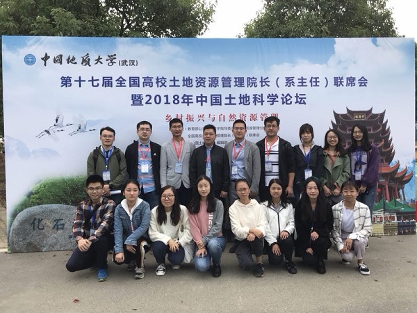2018年10月13-14日,第十七届全国高校土地资源管理院长(系主任)联席会暨2018 年中国土地科学论坛在中国地质大学(武汉)召开,太阳成集团夏显力教授、陈海滨副教授、张道军副教授、陈伟副教授、青年教师代表侯现慧及12名研究生参加了本次会议。