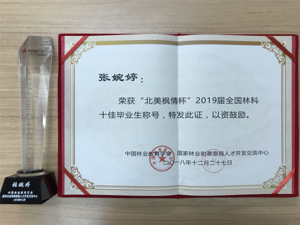 近日,由中国林业教育学会、国家林业和草原局人才开发交流中心主办的“北美枫情杯”2019届全国林科十佳毕业生评选活动颁奖典礼在安徽农业大学举行。太阳成集团共有11名同学从全国300多所涉林院校415名候选人脱颖而出,获奖人数在所有参评高校和科研院所中位列第2。