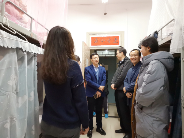 “有困难一定要及时联系学院,告诉辅导员老师。”在得知2018级行动不便学生张文卓在克服身体不适的情况下仍坚持求学,并在上学期顺利通过所有课程,学院领导关切的说道。进入宿舍后,学院领导与同学们亲切交谈。“新学期还适应吗”“平时课程紧张吗”“学习是否有困难?”“毕业后有什么打算?”每到一间宿舍,学院领导都关心询问同学们的学习、生活等各方面情况。随后,学院领导对学生宿舍违章电器等安全隐患进行了检查。