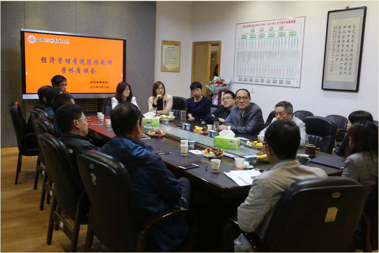 为大力弘扬优良师德师风,表达对退休教师的爱戴与敬意, 9月19日下午,经管学院在C315会议室为王青教授、李小健副教授举行荣休座谈会。学院领导班子成员、系室主任和部分教师代表参加了此次座谈会。