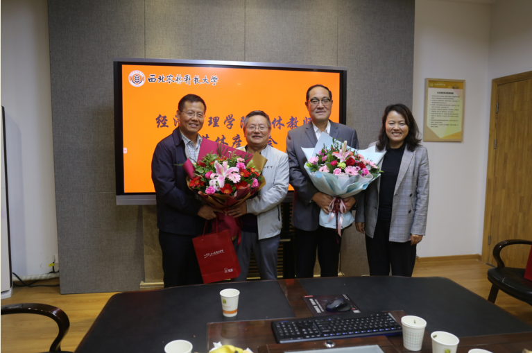 座谈会结束之余,院领导为两位教师敬献了鲜花与纪念品。温馨和谐、轻松愉悦的欢送仪式,充分体现了经管学院对退休教师的尊重与关怀。岁老根弥壮,阳骄叶更浓,老教师是学校的宝贵财富,是年轻教师奋发向上的精神动力,诚挚祝愿他们在退休后心情舒畅、老有所乐、幸福安康。