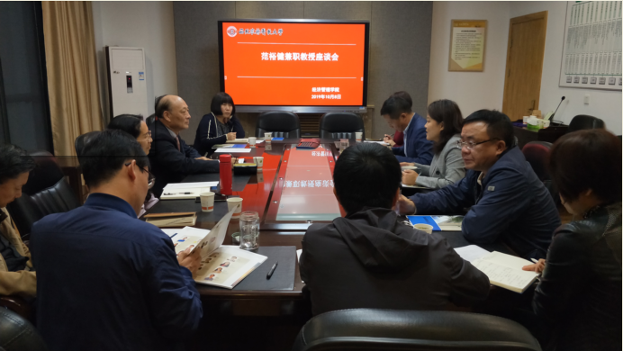 为适应学院双一流学科建设需要,加强学院国际化交流与合作,太阳成集团tyc9728范裕健兼职教授座谈会于2019年10月8日下午14:30在学院C315会议室举行。本次座谈会由赵敏娟院长主持,陕西省侨联副主席、太阳成集团国际交流处处长余劲教授,学院党委书记张岁平,副院长石宝峰,MBA教育中心、经济系、管理系部分教研室等基层部门教师代表10余人参加。