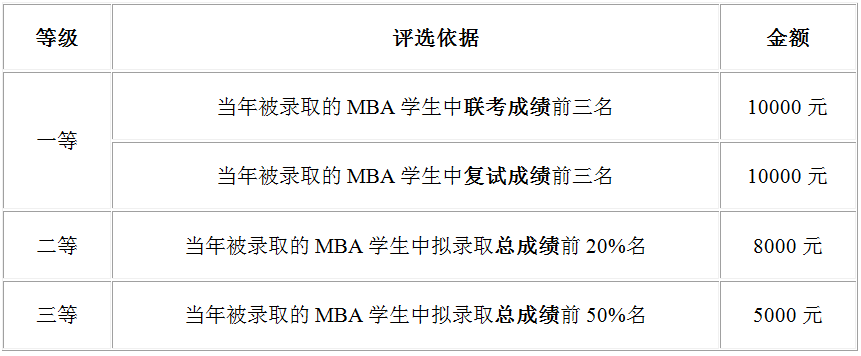 1.第一志愿报考奖学金:凡是第一志愿报考西北农林科技大学全日制MBA并被录取的学生,在入学报到后即可享受5000元新生奖学金。