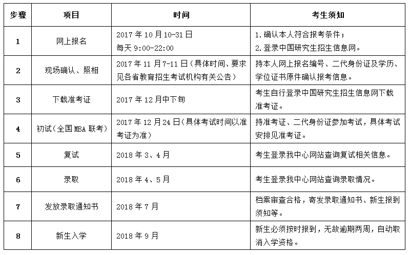 1.初试 初试科目为英语二(满分100分)、管理类联考综合能力(满分200分,包括数学、写作、逻辑三部分),共计两门。初试时间: 2017年12月23日(具体考试时间以准考证为准)。