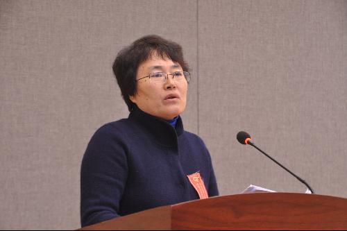 大会负责人李海华宣读文件                   姚晓霞主持选举大会