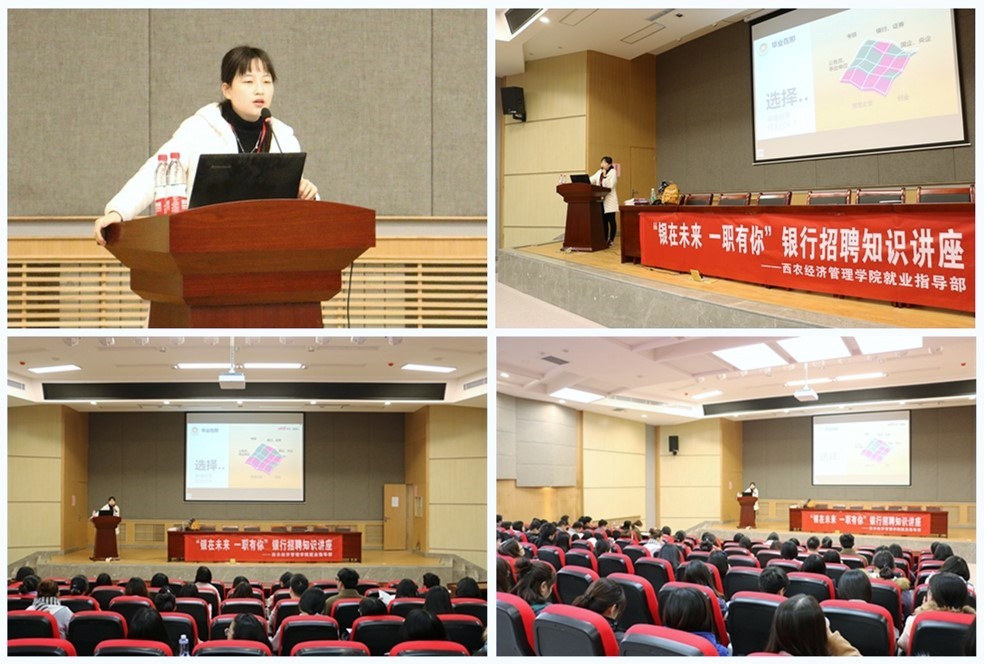 3月19日,学院邀请到中公教育的唐哲老师在经管园林大楼C101报告厅首次举办了银行招聘知识讲座。主讲人唐哲老师首先对整个银行考试招聘的流程作了简要的介绍,同时介绍了各大银行考试的区别以及简历制作、笔试的大致考点、面试的仪容仪表以及特别注意的问题都一一作了详细的指导。她幽默而又详尽的演讲不时引来了阵阵掌声,演讲中的诸多“干货”也让同学们受益匪浅。