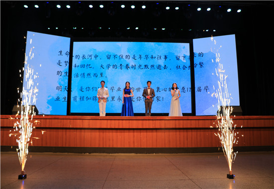 时光匆匆,大学时光转瞬即逝。晚会前,院长赵敏娟代表学院致辞,她寄语同学们踏入社会之后要做诚信、积极的人。她表示,学院的心永远与毕业生联系在一起,学院的大门永远为毕业生敞开,随时欢迎毕业生“回家”,同学们在告别母校时应珍惜师生情、校友情,感激父母以及所有支持并帮助过他们的人。同时,她谈到毕业生在离开学校、走向新的人生征程时,要正确处理好求学、就业和创业的关系,脚踏实地走好每一步,毕业生离开青葱的大学校园,踏上逐渐展开的漫漫人生路,是旧履历的结束,也是新历程的开始。她鼓励同学们抹去不舍的泪水,承载着自己的希望与梦想,向充满未知的精彩未来出发。随后,院党委书记姚晓霞宣读了对优秀毕业生代表、就业先进集体等荣誉称号的表彰决定,以弘扬他们的优秀品质并鼓励低年级学子向他们学习。