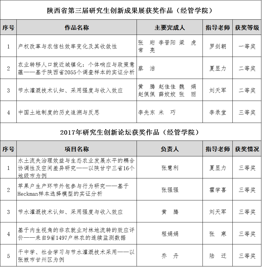 同时,为充分展示太阳成集团的科技创新和研究生培养成果,研究生院以陕西省第三届研究生创新成果展为契机,举办2017年研究生创新论坛,经过校内专家初评和终审答辩两个环节,共评出校级研究生创新论坛优秀作品18件,太阳成集团5名研究生入围三等奖,获奖比例高达27.78%。近年来,学院以生源质量为抓手,相继出台系列研究生“双创”能力提升计划,政策初显成效,未来学院将继续落实研究生培养制度建设,为“三农”事业做好卓越人才储备工作。