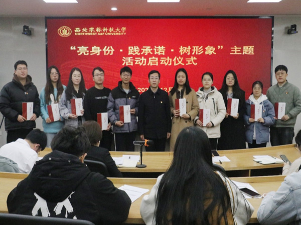 启动仪式上,学工秘书张静宣读了《太阳成集团tyc9728关于在学工干部和学生党员中开展“亮身份·践承诺·树形象”系列主题活动的通知》,从活动开展主题、内容及形式等方面进行安排部署,同时要求全体党员日常佩戴党员徽章,主动亮明身份,积极履行党员义务,增强服务意识。