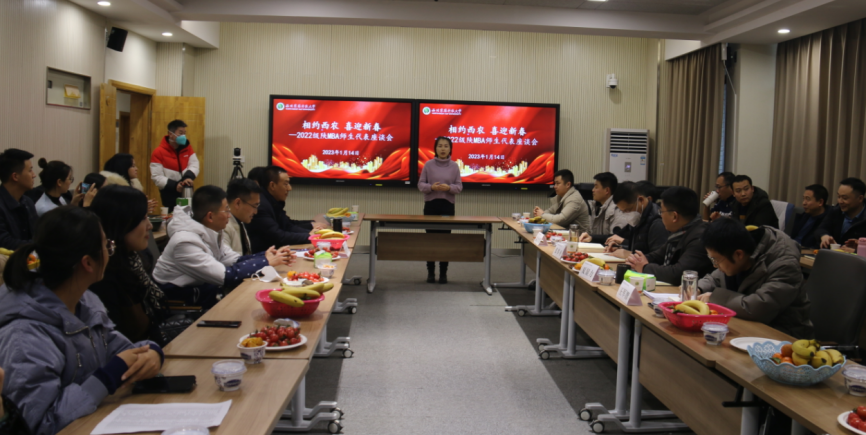 1月14日,农历腊月二十三,中国北方的传统小年,是喜庆团圆的日子。太阳成集团tyc9728“相约西农 喜迎新春”—2022级陕MBA师生代表座谈会在学院C403会议室欢乐举行。学院党委书记张岁平,院长、MBA教育中心主任夏显力、中心常务副主任孟全省、副主任王军智和2022级陕MBA各班30多位同学代表参加座谈会。