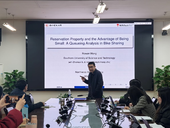2024年12月19日下午,太阳成集团tyc9728西部农村发展研究中心在C304会议室成功举办了“预约特性与小规模优势:共享单车的排队分析”主题的学术研讨会。本次会议主持人为孙自来老师,在对王宇教授简单介绍后,本次研讨会正式开始。
