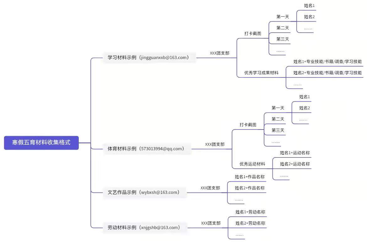 5.打卡截图以每一天为单位,设置一个文件夹进行收取,打卡截图示例见附件二,打卡截图材料收取截止到2月5日,打卡活动持续至寒假收假前一周,优秀作品单独建一个文件夹收取,最终所有材料以团支部为单位上交至对应部门,材料提交命名要求见附件三。