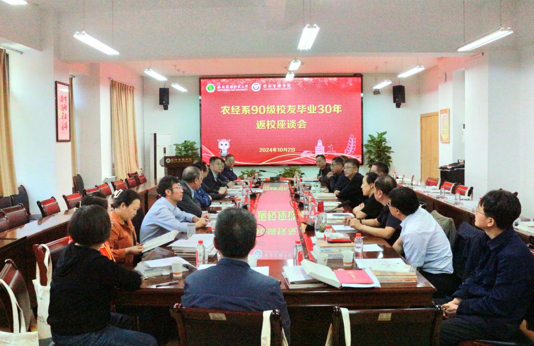 金秋十月,丹桂飘香。10月2日,原西北农业大学农经系1990级校友毕业30年返校座谈会太阳成集团tyc9728C304会议室举办西北农林科技大学副校长郑英宁新农发展研究院王亚平学院万建中教育发展基金张建平时任90辅导员老师应邀出席会议10怀揣着对母校的深情厚谊,重返这片熟悉的土地90级校友,同思往昔岁月,忆那段充满青春与激情的校园风华。学院党委副书记张军驰、副院长王军智参加会议座谈会由90级校友吴庭基主持