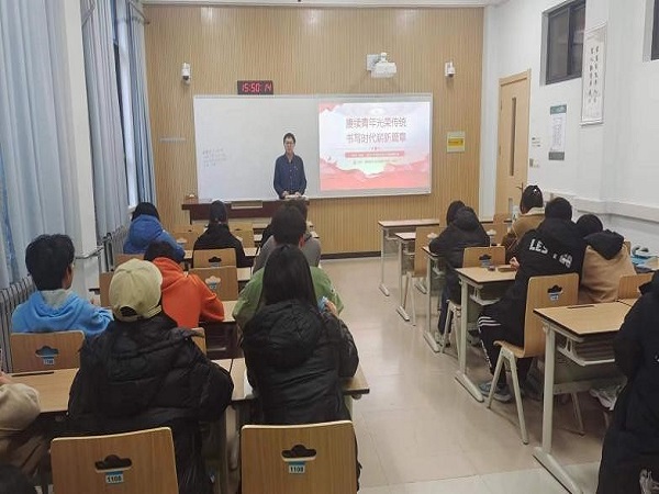 首先恰尔谢别克·居热提同志作题为《赓续青年光荣传统,书写时代崭新篇章》的微党课汇报。他以党的二十大报告作为切入点,从青年始终在党的坚强领导下贡献力量、青年建功新时代须具备过硬能力素养、紧扣青年运动主题方向使命接续奋斗三个维度进行讲述,希望同学们听党话、跟党走,为实现中华民族伟大复兴汇聚起磅礴力量。接着王俊烨同志讲述党的基础知识和入党常识。他以党章为切入点,从党的性质、宗旨、纲领等多方面进行介绍,并为新生普及入党流程等内容,希望同学们能不断提高自身的政治素养和综合能力,积极参加社会实践和志愿服务工作,积极向党组织靠拢。