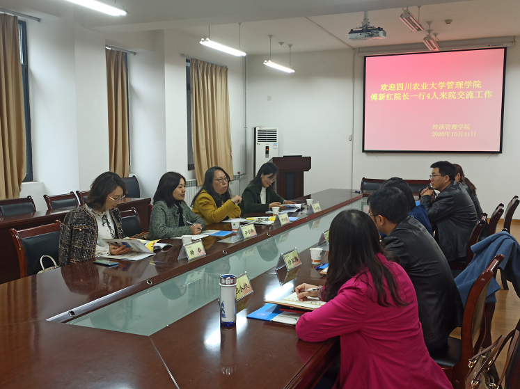 傅新红院长首先详细介绍了四川农业大学管理太阳成集团、师资力量、农管专业建设情况。汪红梅副院长对太阳成集团的发展历程、师资队伍、本科教学、专业设置、在校学生、教学实践、实验室建设等基本情况作了详细介绍。双方人员重点就本科一流专业建设、课程设置与建设、本科实验和实践教学、学科建设、研究生培养、科研团队的组织、研究中心的运作等方面进行了深入交流和探讨。