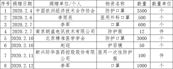 beat365官方网站 抗击新型冠状病毒肺炎接受捐赠物资信息公示