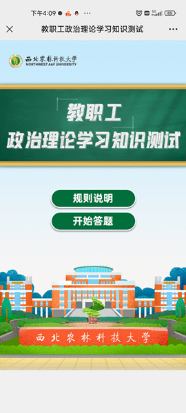 测试方式:通过学校官方微信首页中“理论测试”端口开展学习(见图),需完成“应知应会知识测试”和“随学随测”两个模块(可多次测试,需达90分以上),学校党委宣传部对教职工测试成绩统计,并计入考核。