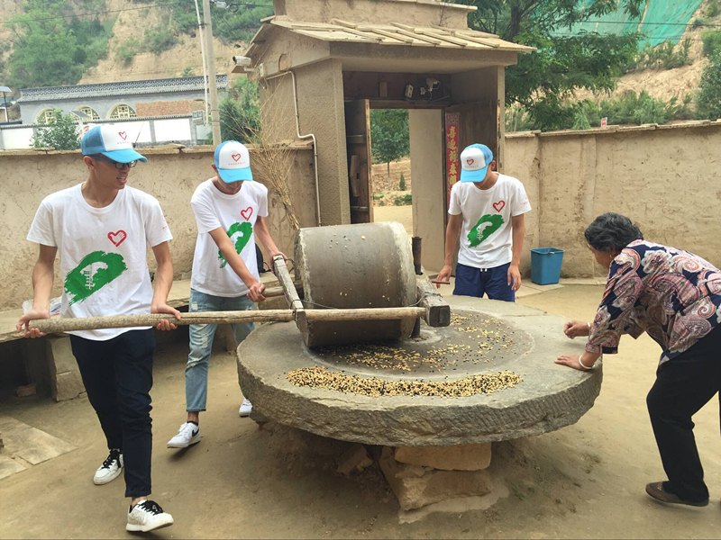 从苹果园回到村中,队员们又马不停蹄地与当地村民进行了沟通,拜访了村里一位高寿的老奶奶,帮老人家推磨磨了豆子,奶奶很热情地和队员们进行了交流,了解到奶奶家中只有她一人,队员们都很心疼奶奶,但从与老人家交流的字里行间,能深切的感受到她的心深爱着梁家河村,这里就是老人家的归宿。