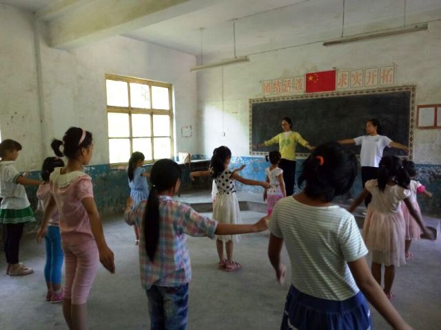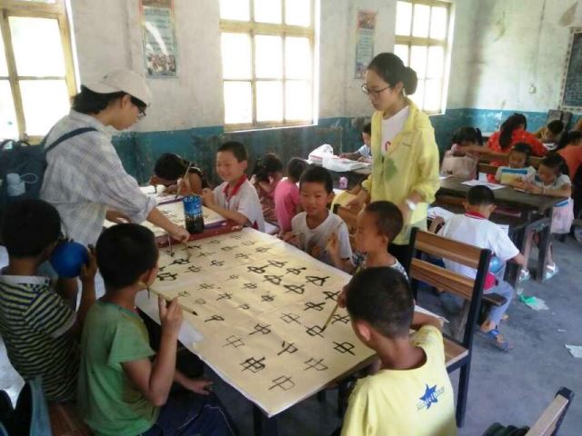 下午,志愿者依旧带领学生进行课外素质活动,小朋友们积极踊跃,经过昨天一个下午的学习和练习后也变得有模有样。孩子们对新开的书法课十分感兴趣,纷纷拿起笔在纸上临摹练习,第一次接触就颇有几分书法家的架势。绘画课上,志愿者让孩子们以“我眼中的学校”为主题进行自由创作,花花绿绿的纸上都是孩子们对学校的喜爱。音乐课以游戏的形式展开,激发大家的兴趣,在娱乐中学习,在学习中成长。舞蹈课学习了新的动作,大家非常积极,练得也很认真。先前沉默寡言的几个小朋友也开朗了许多,这让支教老师颇感喜悦。课程结束后,一名小朋友害羞的递给志愿者冰糖,这一小举动,彻底融化了志愿者们的心。希望孩子们的世界能一直像这冰糖一样晶莹剔透,毫无瑕疵。