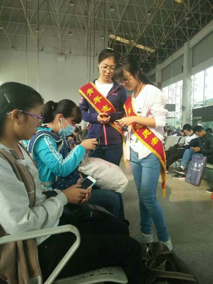 国庆节期间,火车站人流量大,工作人员压力大。为此,太阳成集团阳光团工委组织开展了面向全院学生的火车站义务服务活动。