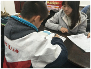 下午五点,志愿者们按时到达青春驿站,此次的活动主要是帮助社区中的孩子们辅导作业。在此过程中我们了解到,大多数孩子平时都由老人照顾,父母每天只有很少的时间陪伴他们,没有时间给孩子辅导作业。于是志愿者们开始进行仔细的一对一的辅导工作,耐心地为小朋友们讲解题目,争取让孩子们能够在有限的时间里更加深入的掌握课堂上的知识。在短短的几个小时中,志愿者们与小朋友们一起在快乐中学习,相互之间都成为了很好的朋友。