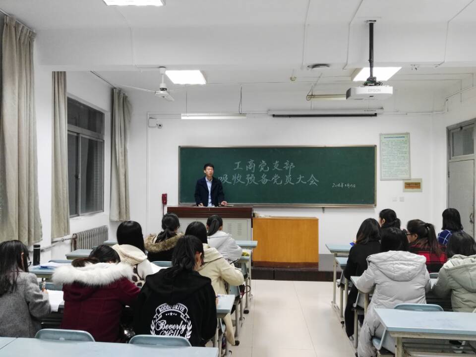 11月15日晚,工商党支部于南校区1205教室召开支部大会,本次会议主要讨论是否吸收左艺辉等6名同志为预备党员,由支部副书记张裕敏同志主持会议,支部书记丁坤老师、学院思想政治教育指导教师郭洪水老师及支部全体成员参加会议。