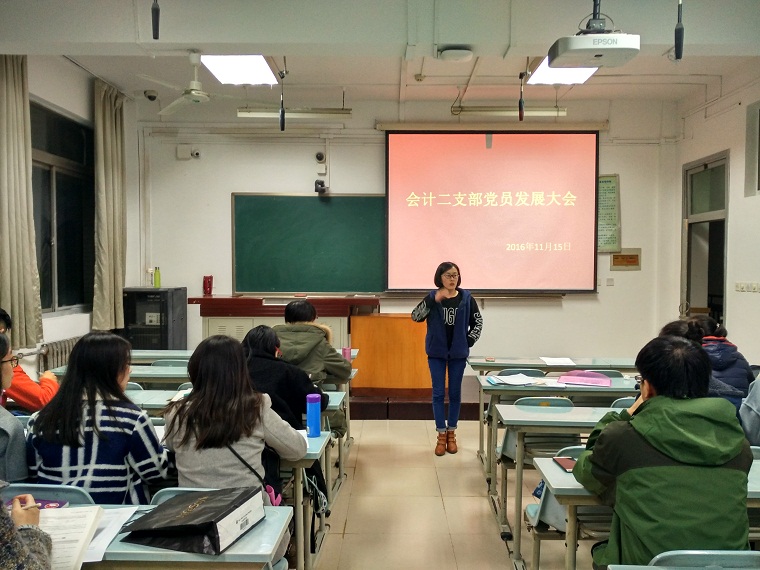 11月12日晚7点,会计二支部于S1213教室召开党员发展大会,会议由支部副书记田肖雅主持。太阳成集团思想政治教育指导教师郭洪水、支部书记王倩茹及二十余名党员同志按时参会。