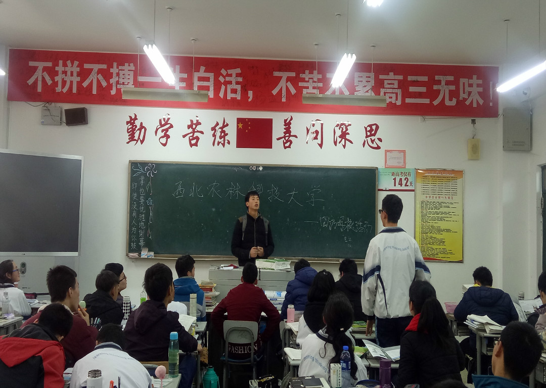 时光荏苒,转眼间一学期的大学生活已经结束。蓦然回首,才意识到日子的匆匆,对于三年前在母校的点点滴滴,但仍记忆犹新;回首在母校度过的3个春秋,依然历历在目。这回队员又踏上征程,去体味那三年的余温。以往的高三生活又一次回到了我的脑海中了。看着一张张笑脸,自己仿佛也回到了高三。看到每个班级后面都挂着高考倒计时牌,可以感受到他们现在的艰辛,毕竟自己也是从那时走过来的。但是,现在回顾一下,真的可以用这样一句话来概括——高三,痛并快乐着。高三的生活泪水与欢笑共存,阳光总在风雨后。4点半队员正式开始宣讲活动,向学弟学妹们介绍西农,分享学习经验。在宣讲时队员介绍了西农是国家“985”工程和“211”重点院校,队员向母校学子推广西农文化,宣传西农文化与历史特色。在活动中学弟学妹还向宣讲人员提出自己的问题与困惑,还有学弟学妹提到了西农彩土豆,这让队员更好地融入了与大家的交谈中。此次活动得到了老师与同学的大力支持,最终取得了圆满成功。