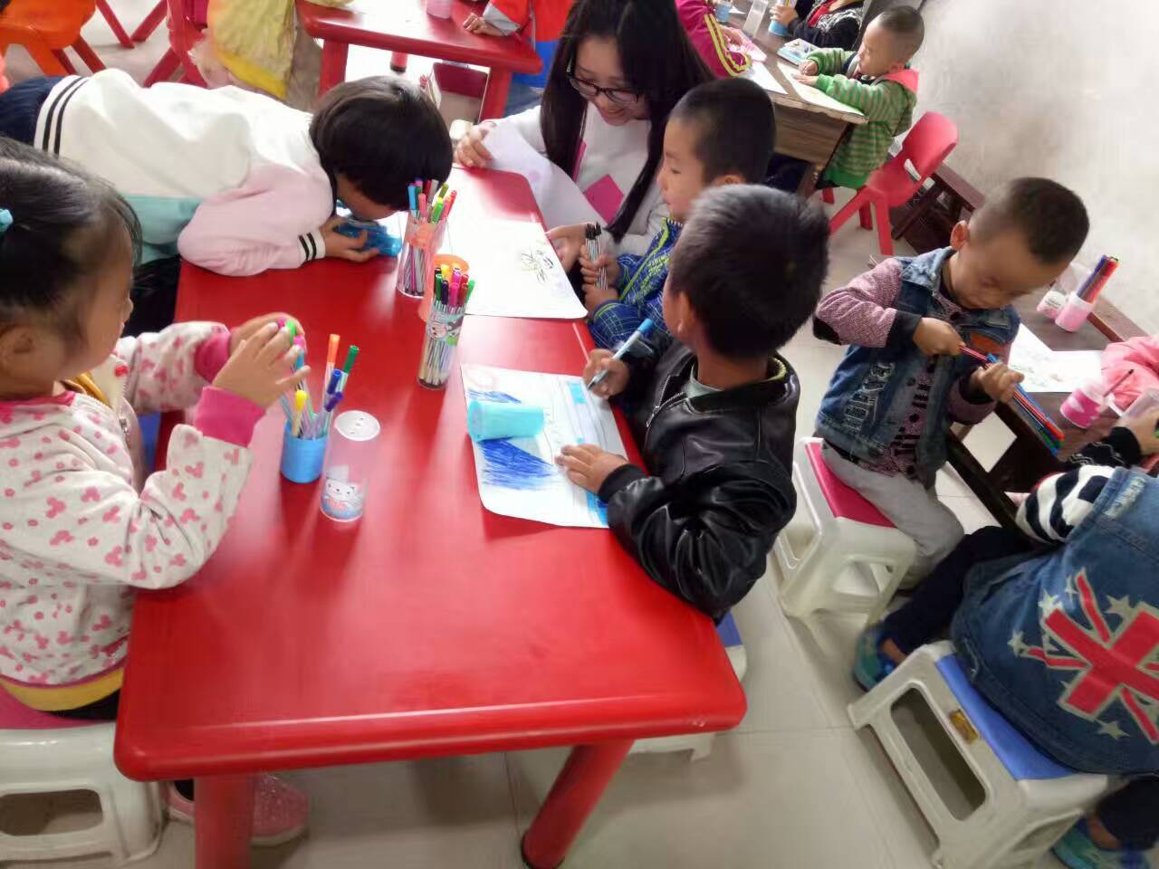 绘画教学是本次支教的主要活动。志愿者们鼓励孩子们画出每人心目中的美丽的校园。大家积极参与,发动脑筋,各自创意无限,呈现出一片欢乐与热烈的气氛。随后,志愿者引领小朋友融入绘画天地,愉快畅游绘画海洋,对小朋友的困惑与疑问进行耐心的解答,并帮助每一个孩子完成、完善他们的作品。绘画结束后,村助理与志愿者们对大家的作品进行了评比,并选出其中最漂亮的作品进行展示,被选中作品的孩子脸上写满了骄傲与自豪。结束了愉快的绘画活动,志愿者们带领孩子们走出教室,来到操场,做多种多样有趣的游戏,每个人脸上都洋溢着开心的笑容,操场上回荡着爽朗的笑声。本次支教活动受到了幼儿园老师与家长们的一致好评,他们由衷希望今后能继续开展此类活动。