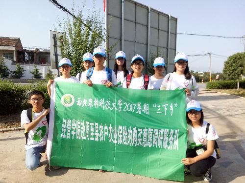 为进一步引导同学们深入基层,促使当代大学生在实践的大课堂中了解基层,知晓民情,明确当代大学生肩负的历史使命,培养主人翁的责任意识与使命感。7月10日,西北农林科技大学经管学院赴周至县农户农业保险购买意愿调研队一行10人赴周至县终南镇三湾村进行农业保险的购买意愿以及农业保险开展情况的预调研。