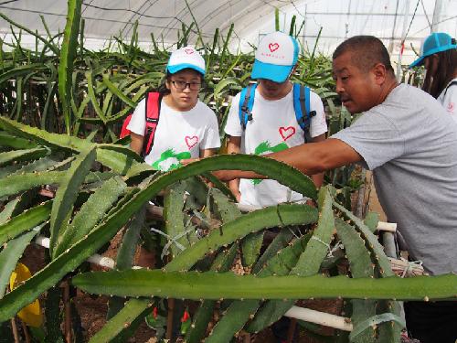 上午8:10,根据队长的事先联系,小队成员一同抵达马社长的农村合作社办公处。马社长十分热情地接待了我们,并且耐心回答了我们事先准备好的关于该社农户农业保险的投保种类和农户购买情况的问题。在访谈过程中,工作人员沏茶招待大家,并且拿出当地投保农业保险的保险单和笔录给大家传看。 为满足我们的好奇心,农户带我们去实地了解大棚种植的实际情况。“在村子合作社的指导下,我们种植热带水果,引进高新技术,今年收成真不错,辛苦没有白费!”承包了大棚的农户激动地说。马蓬村自2010年开始发展大棚种植以来,不断地进行种植内容、技术上的创新。依托大棚技术,合作社引进了火龙果、百香果等热带水果,真真正正给村民增了收。同时,2013年开展的新型农业保险,如蔬菜价格指数,在当季蔬菜大批上市造成价格下跌的时保障了农户的利益,使农户可以踏实放心地搞好农业生产。 “5月份的西红柿(价格指数)保险赔偿金发下来了,保险公司确实讲信用,我家明年还会买!”保险公司对理赔环节的改进也缩短了提高了农户理赔的效率,大大增强了农户购买农业保险的意愿。